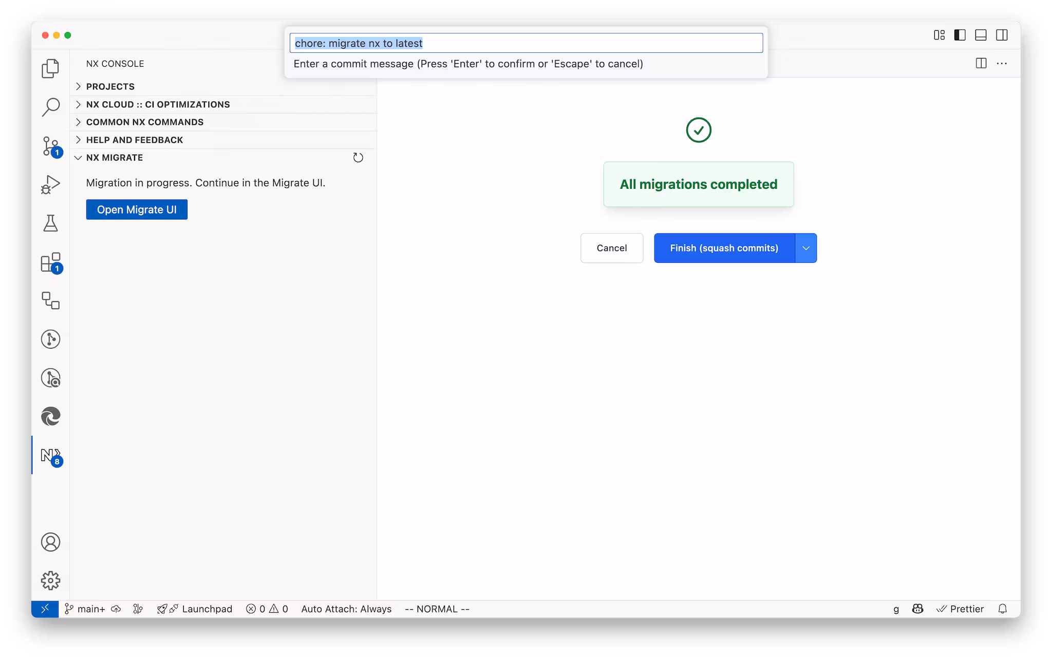 The Migrate UI is available for VSCode and Cursor editors. Make sure you have the Nx Console extension installed before you continue.